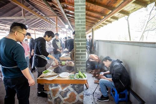 自己动手,丰衣足食!土灶台活动一开始,大家就自觉地忙活起来,高效地生火与准备食材,同事们齐心协力,分工搭配,有条不紊地将所有准备工作完成。在此期间,欢声笑语随着阵阵炊烟从中传出,同事们言笑晏晏,其乐融融。