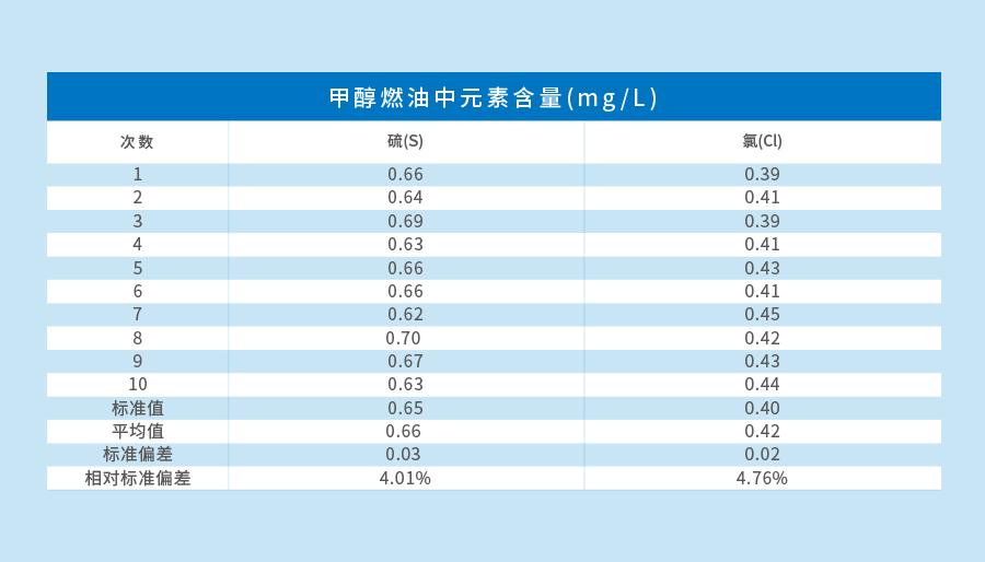 甲醇作为化工生产中的重要原料,被广泛应用于生产化肥、塑料、颜料、胶粘剂、石油、合成纤维、染料和农药等产品中。对甲醇进行元素成分分析,有助于为生产工艺的优化提供数据支持,确保原料的纯度和质量符合生产要求,从而保障下游产品的质量和稳定性。 |
